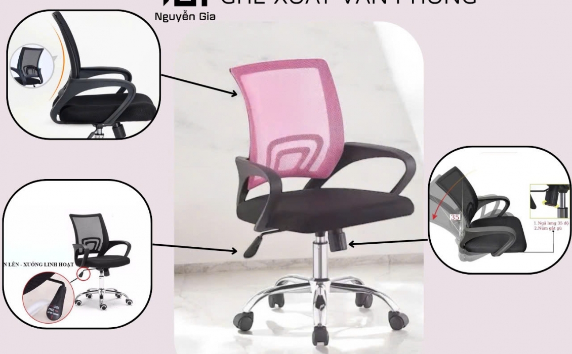 Ghế văn phòng chân xoay lưng lưới - ghế làm việc, lung lưới xoay tròn 360 độ cao cấp