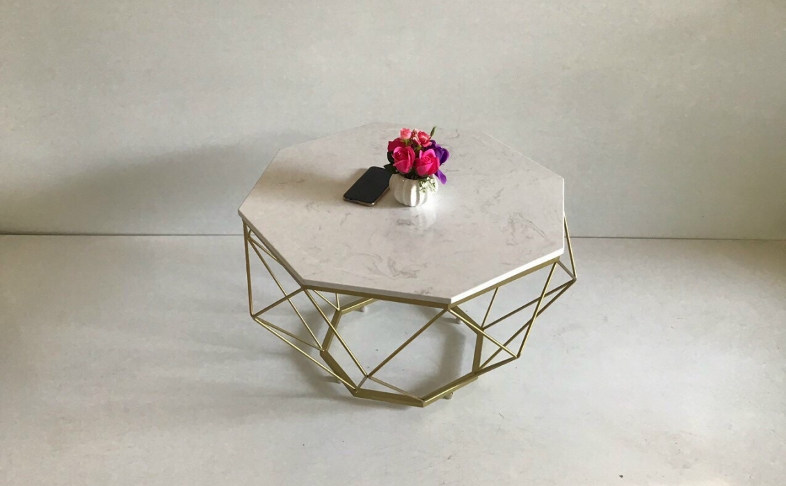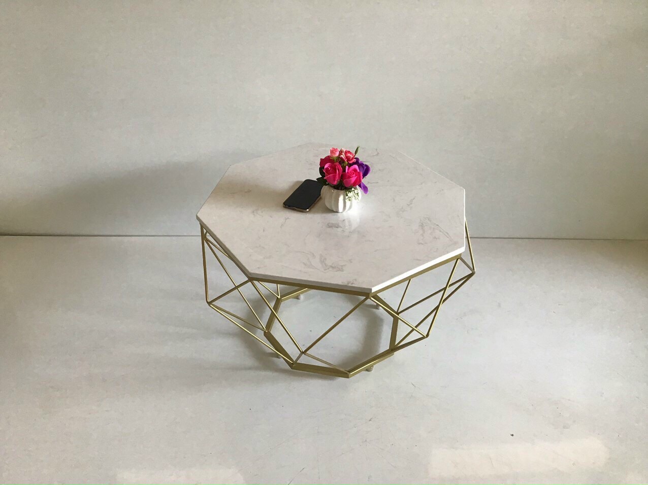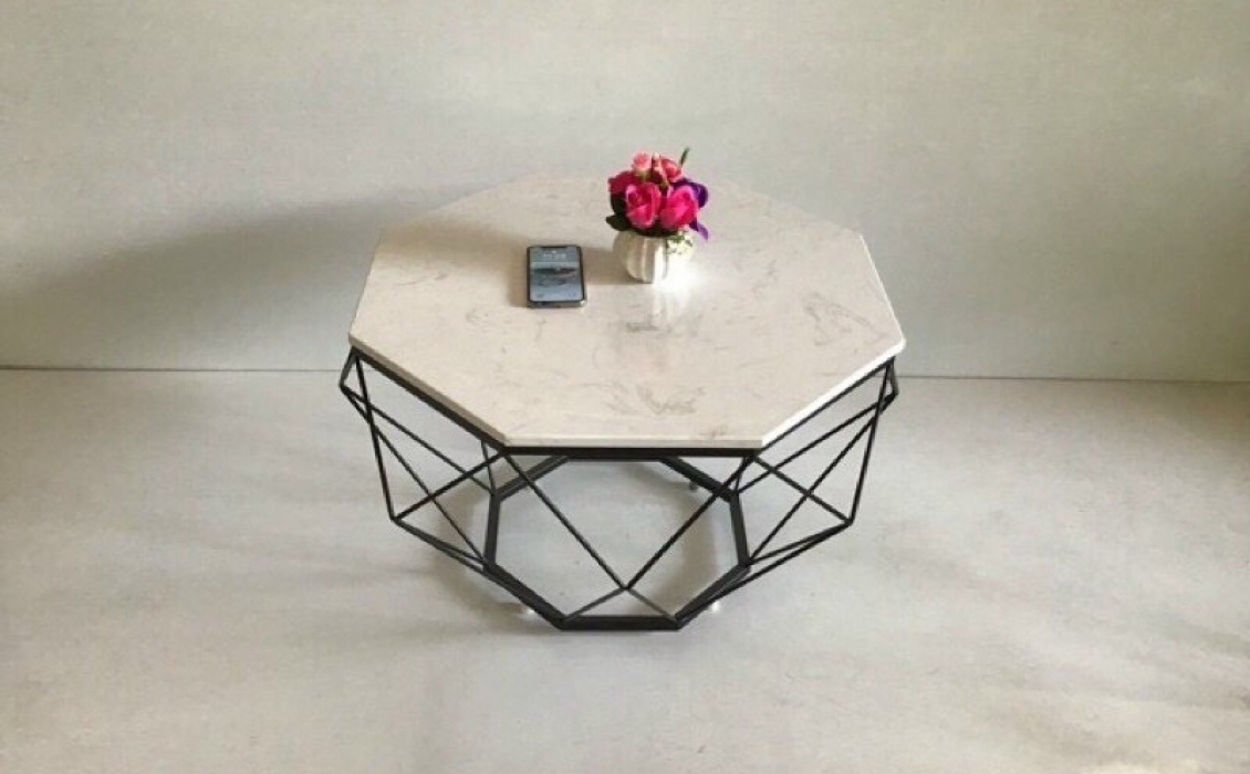 Bàn tròn sofa chân sơn tĩnh điện, mặt đá vân mây Marble