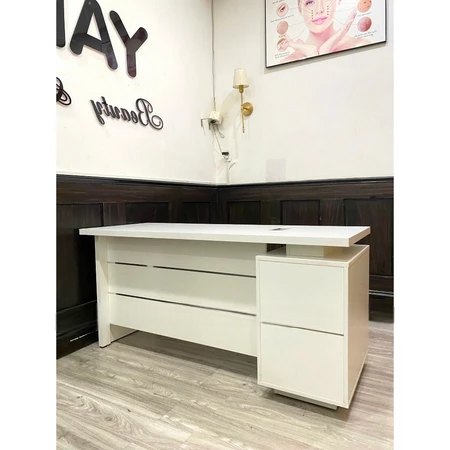 bàn giám đốc gỗ kích thước cả tủ 1m6x60 cao 75cm với mặt bàn in hoa văn hiện đại mặt bàn chống ẩm cao cấp., là một trong những mẫu bàn được khách hàng ưa chuộng bởi phong cách thanh lịch, chất lượng cao cấp, giá thành phải chăng.
