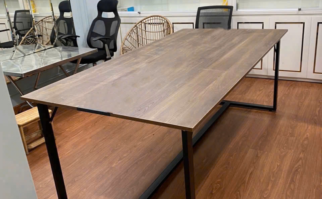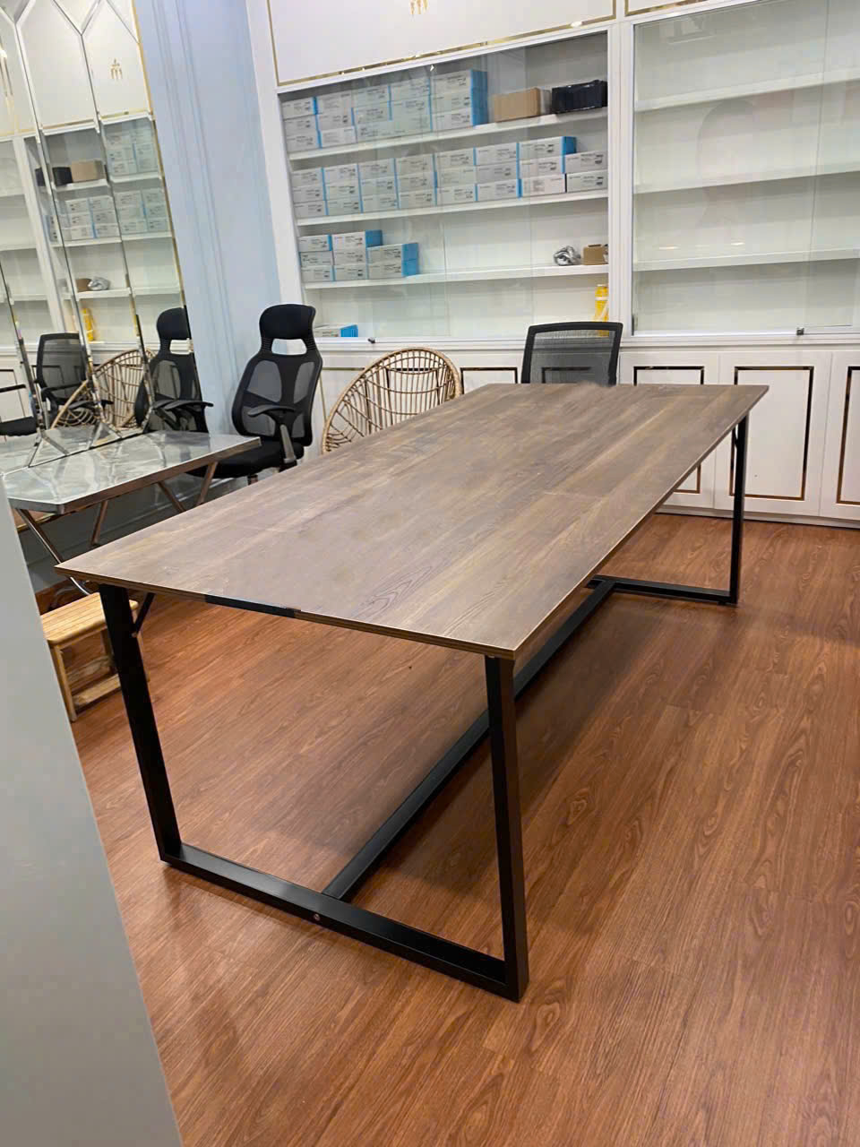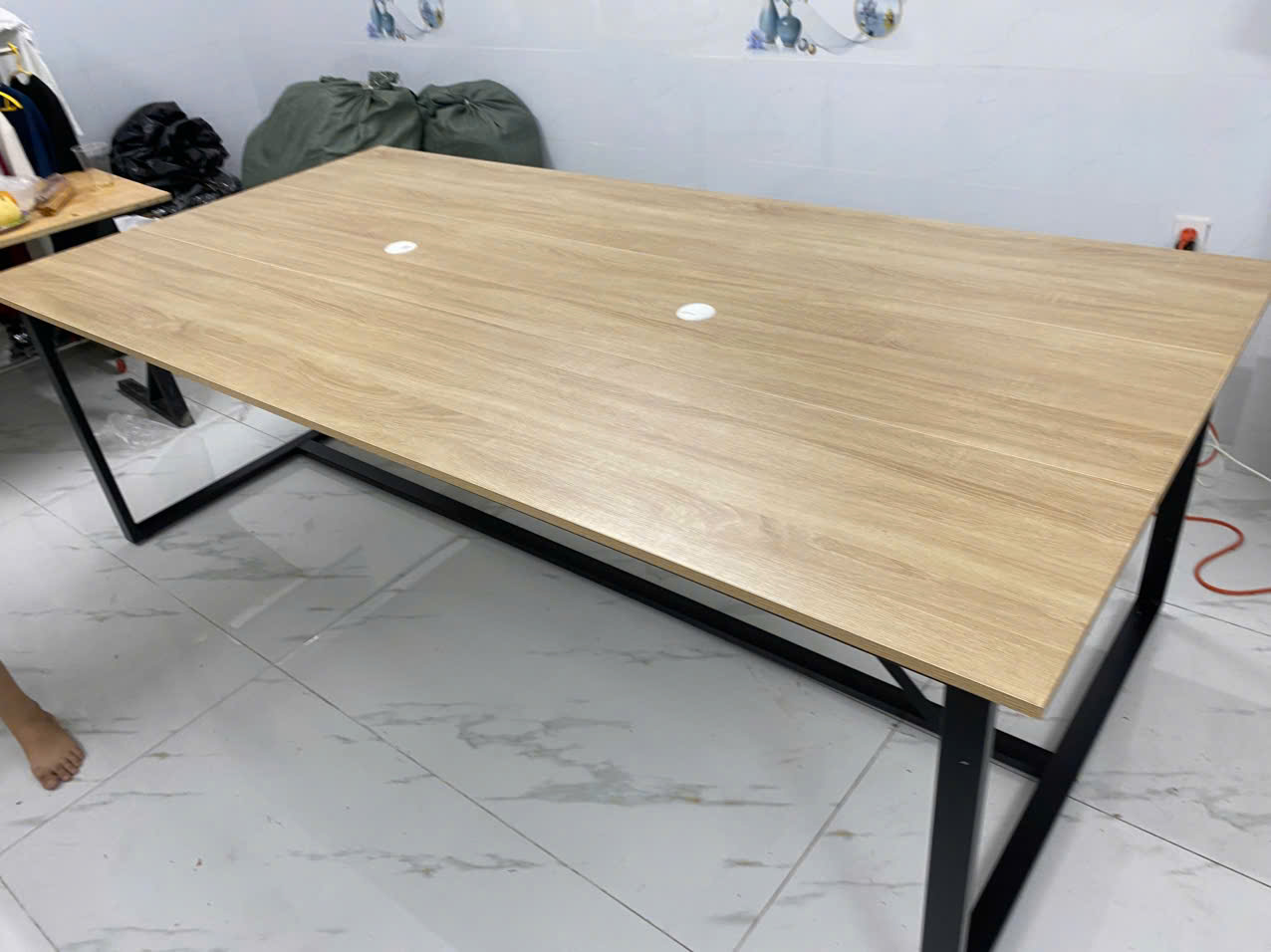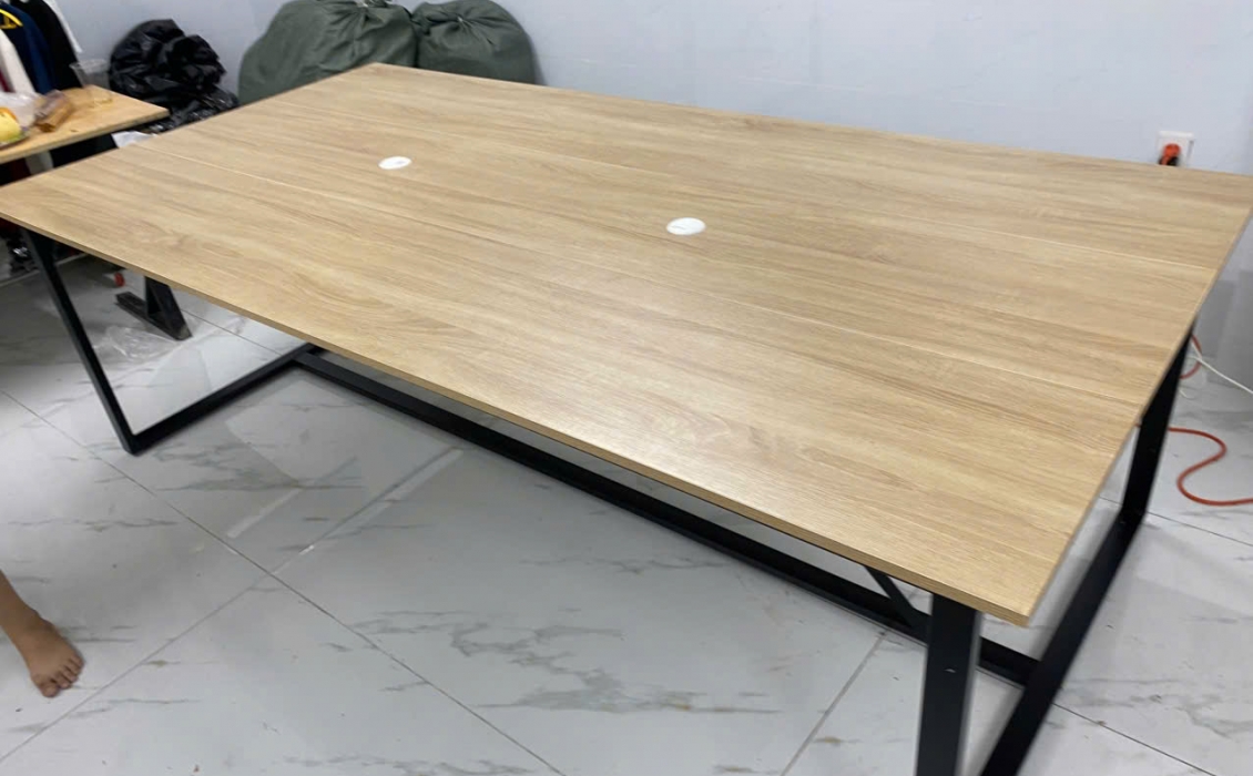 Bàn chữ đẹp mắt, đơn giản. Chất liệu khung sắt mặt bàn Mdf phủ melamin chống thấm phù hợp làm bàn họp và làm việc tập thể.