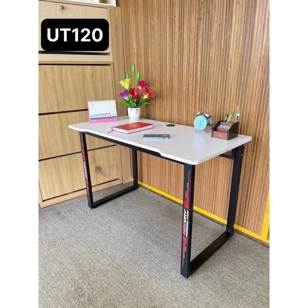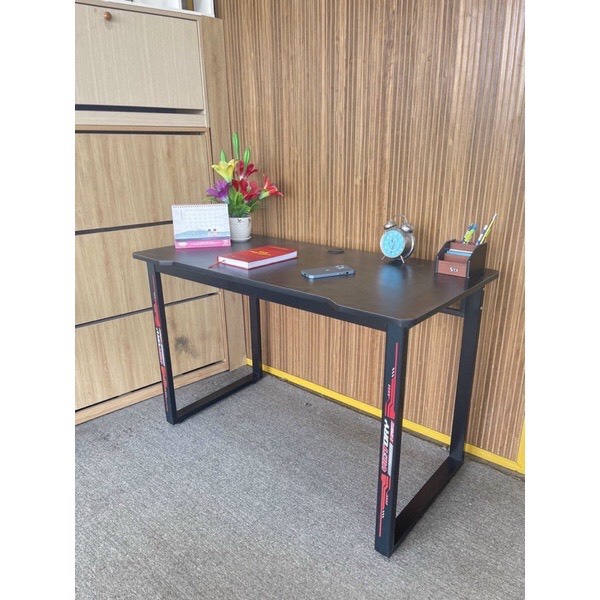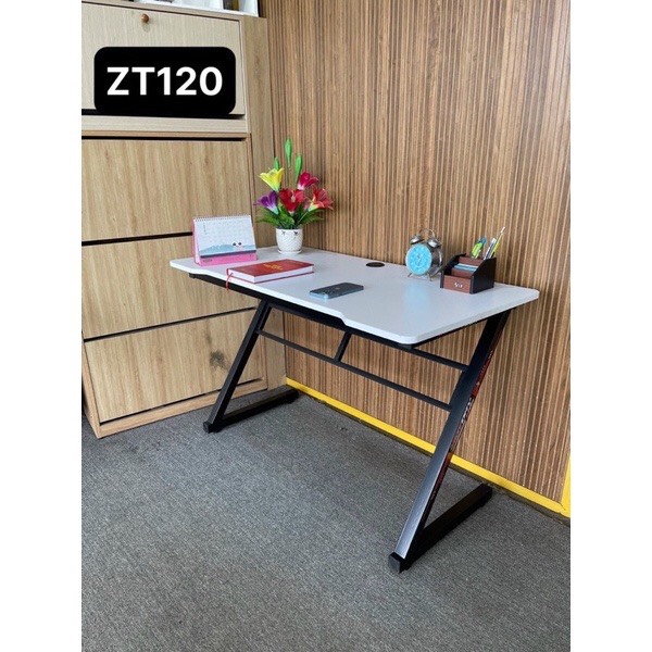 Chất liệu chân sắt lắp ráp sơn tĩnh điện, mặt bàn gaming mdf phủ melamin chống chịu được thấm nước