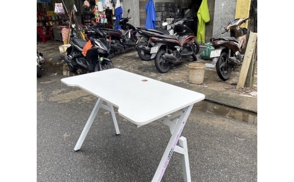 Bàn mới 100%, lắp ráp gọn nhẹ dễ vận chuyển Chất liệu sắt sơn tĩnh điện và mặt bàn ván chống thấm