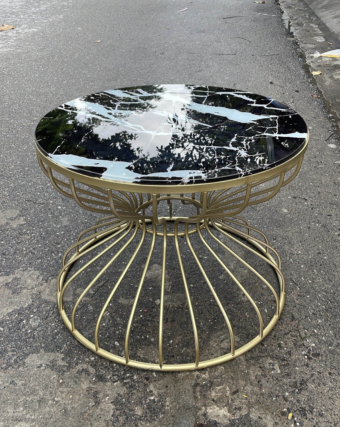 Bàn tròn sofa chân sơn tĩnh điện, mặt kính cường lực 8li