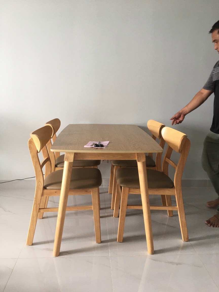 Chất liệu: Gỗ cây cao su mặt bàn mdf phủ melamin sơn bóng chống thấm.