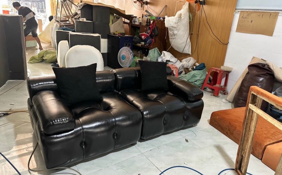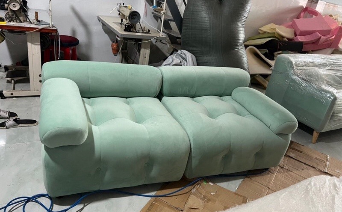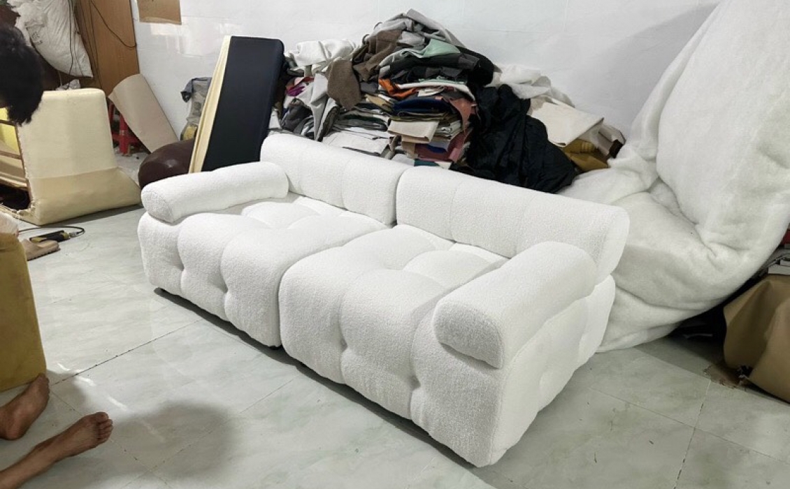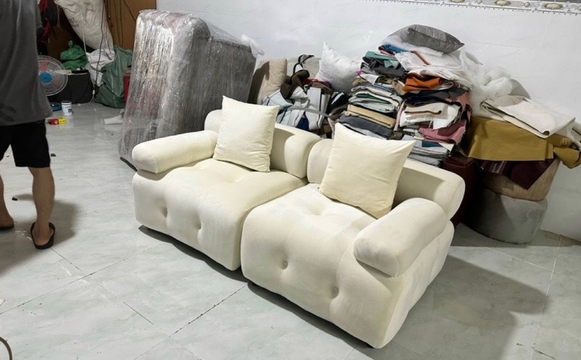 Chất liệu khung gỗ dầu chắc chắn, nệm d40 bọc vải cừu ( khách có thể chọn vải nỉ, nhung cũng được)
