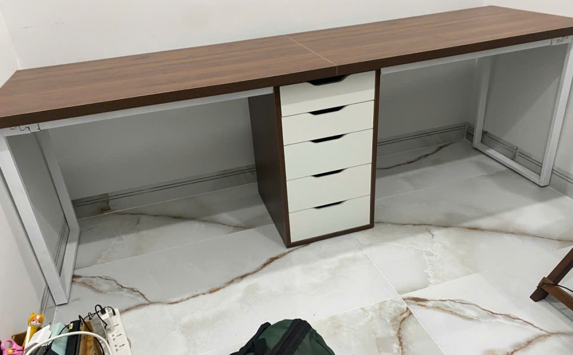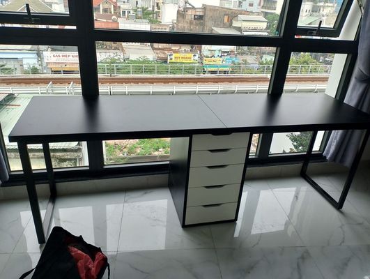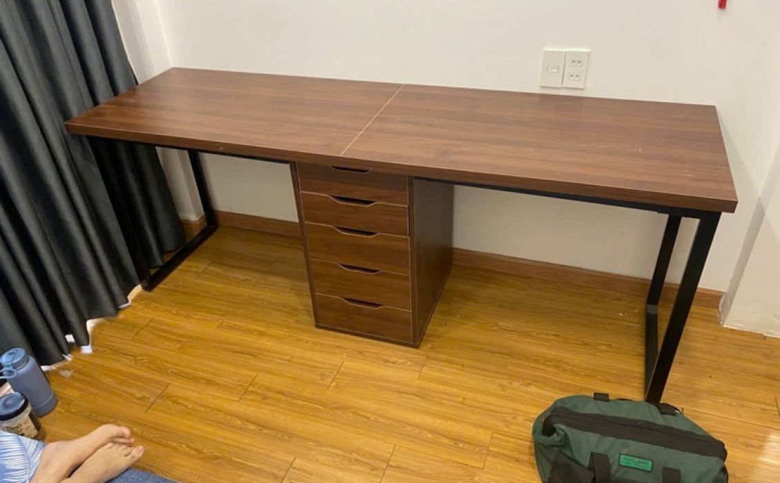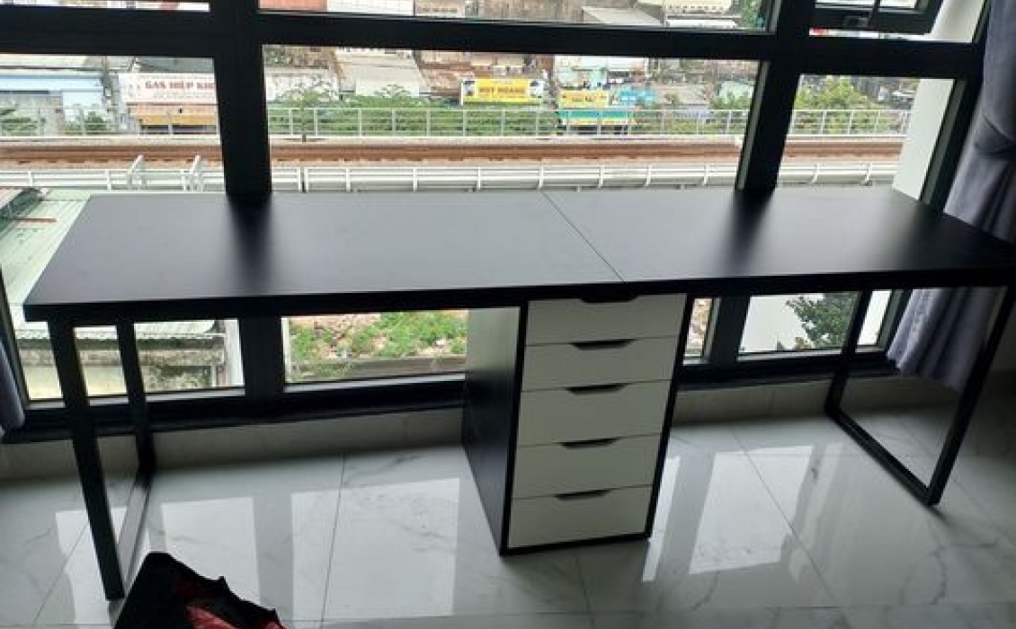 Bàn IKEA 1 tủ2m,2m2,2m6, 2m4, thiết kế 1 tủ IKEA ở giữa, 2 bên chân sắt.