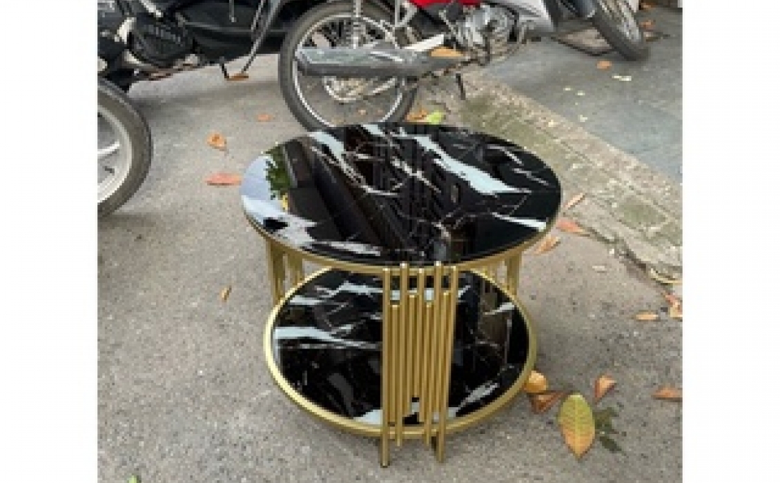 Bàn tròn sofa chân sơn tĩnh điện, mặt kính cường lục 8li