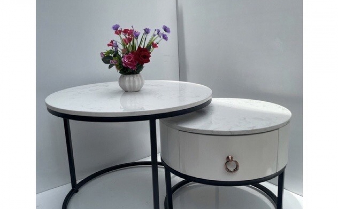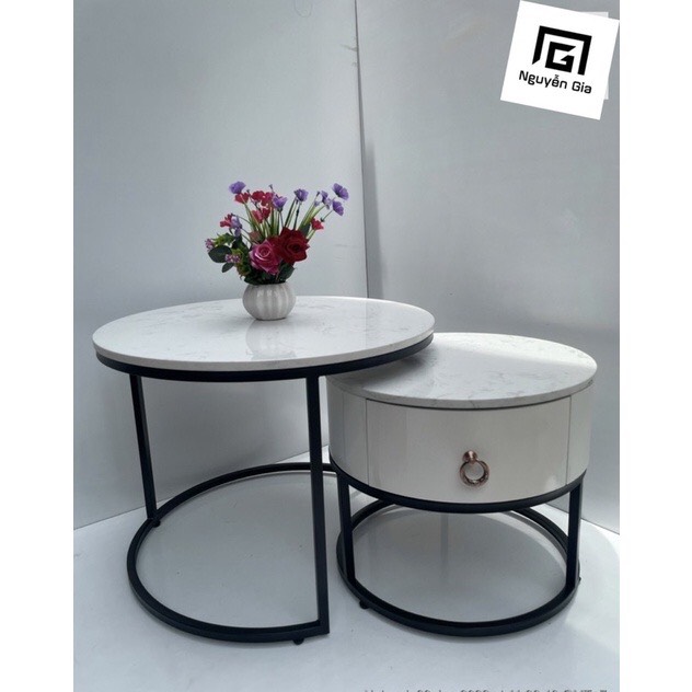 Chất liệu : Chân sắt sơn tĩnh điện kết hợp mặt đá hoặc mặt kính
