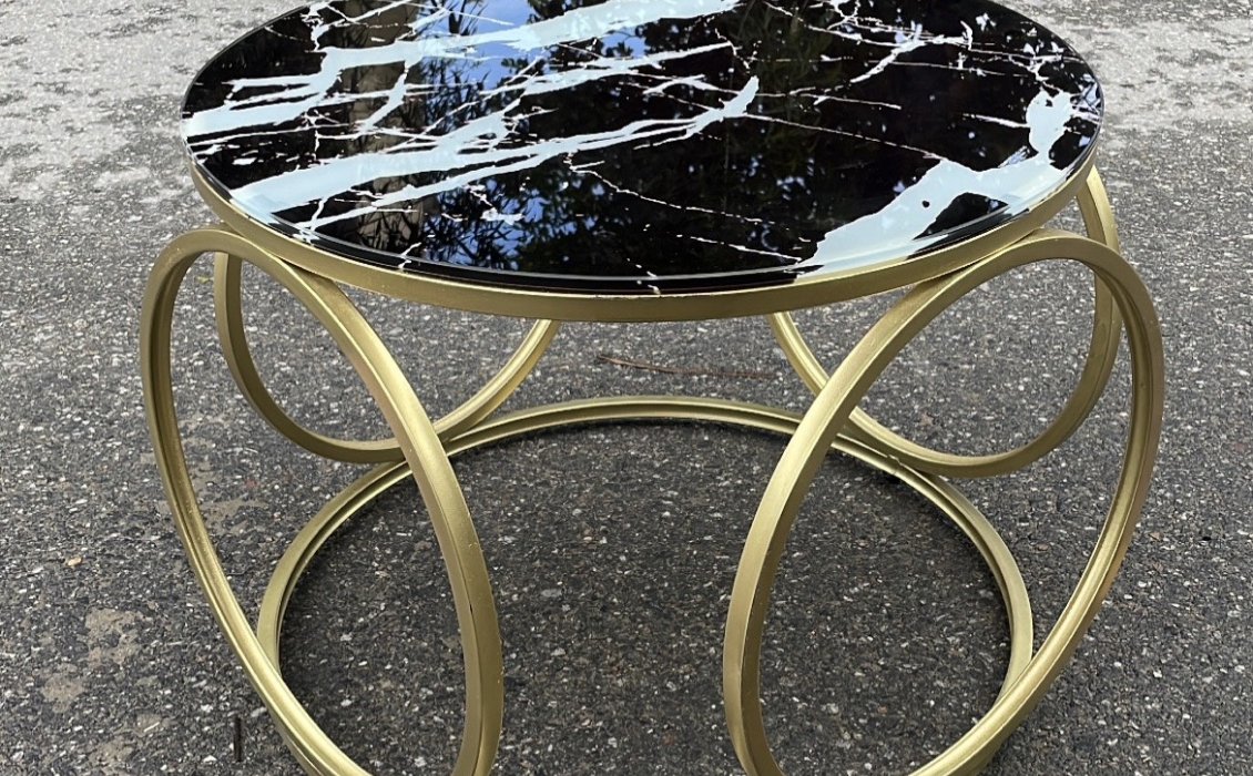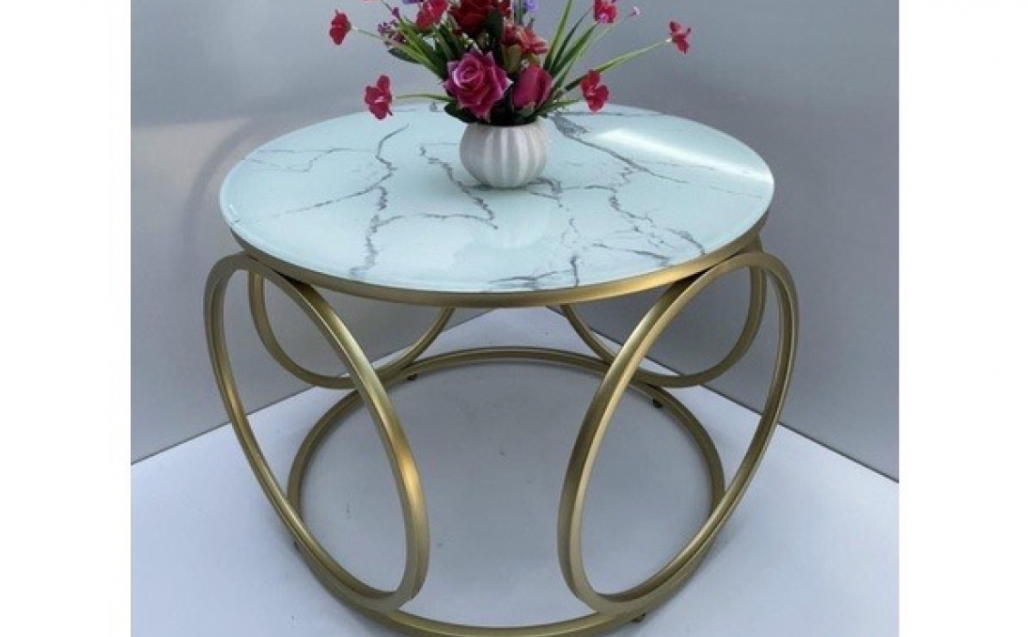 Bàn tròn sofa chân sơn tĩnh điện, mặt kính cường lực 8li